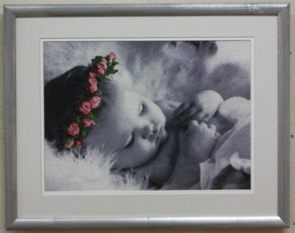 Вышивала в честь рождения дочери, через месяц после родов приступила к вышивке, по времени вышло 42 недели, впрочем столько же ходила с животом))) год 2011