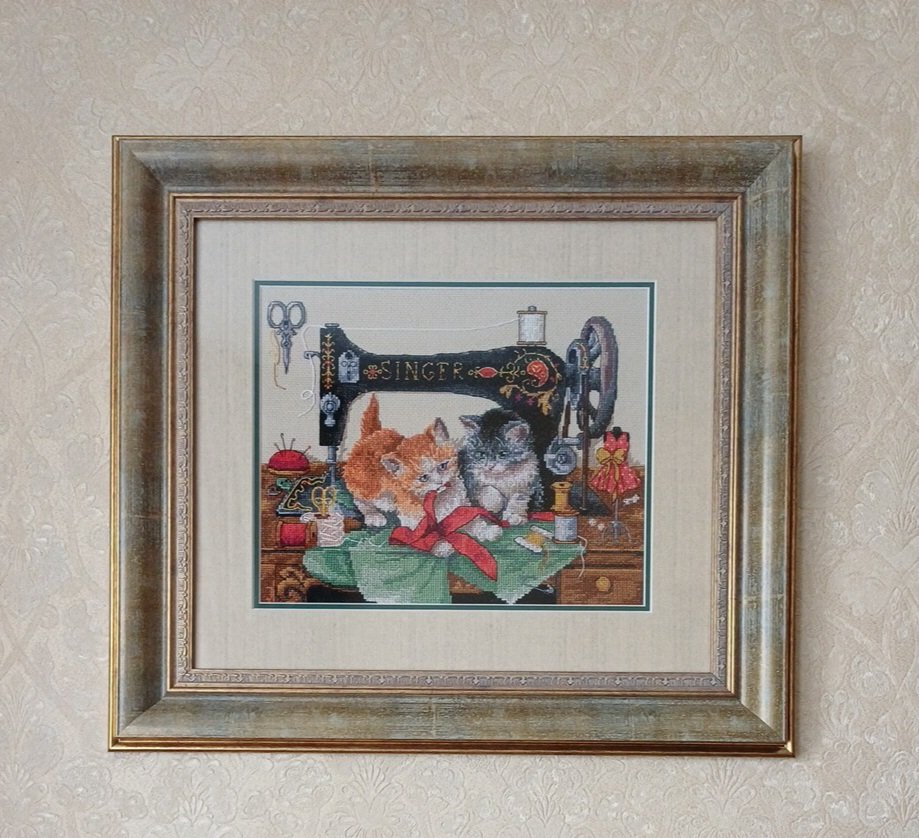 Котята и машинка.Вышила за 20дней. Оформила так же,как и ранее 2 выш вки( мишки и машинка)
