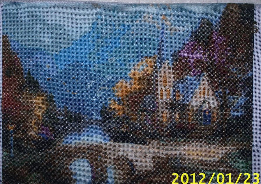 Вышивка «часовня в горах»