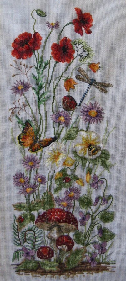 Тут и цветы, и насекомые, и грибы... Вобщем, весёлая картинка получилась!