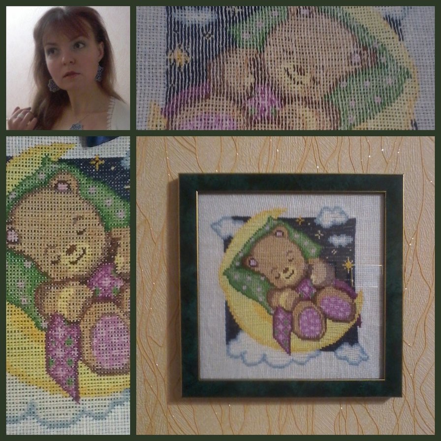 Коллаж из фотографий, который включает общий вид, лицевую и изнаночную стороны. На мне - текстильные украшения с машинной вышивкой крестиком. :)