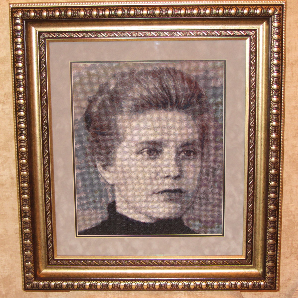 Очень хорошо проработанная вышивка, портрет лучиться теплотой , молодец мастер ))