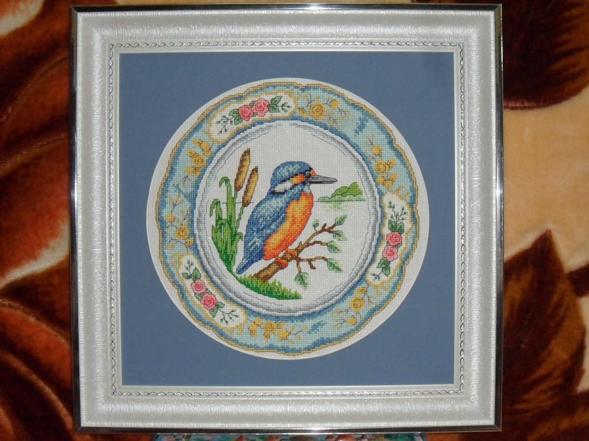 Вышивка «Тарелочка "Зимородок"»