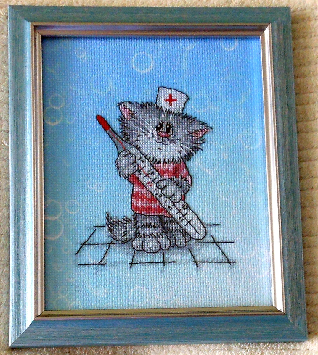 Вышито по дизайнерской схеме Натальи Черепановой на дизайнерской канве от МП Студия. В подарок доктору.
