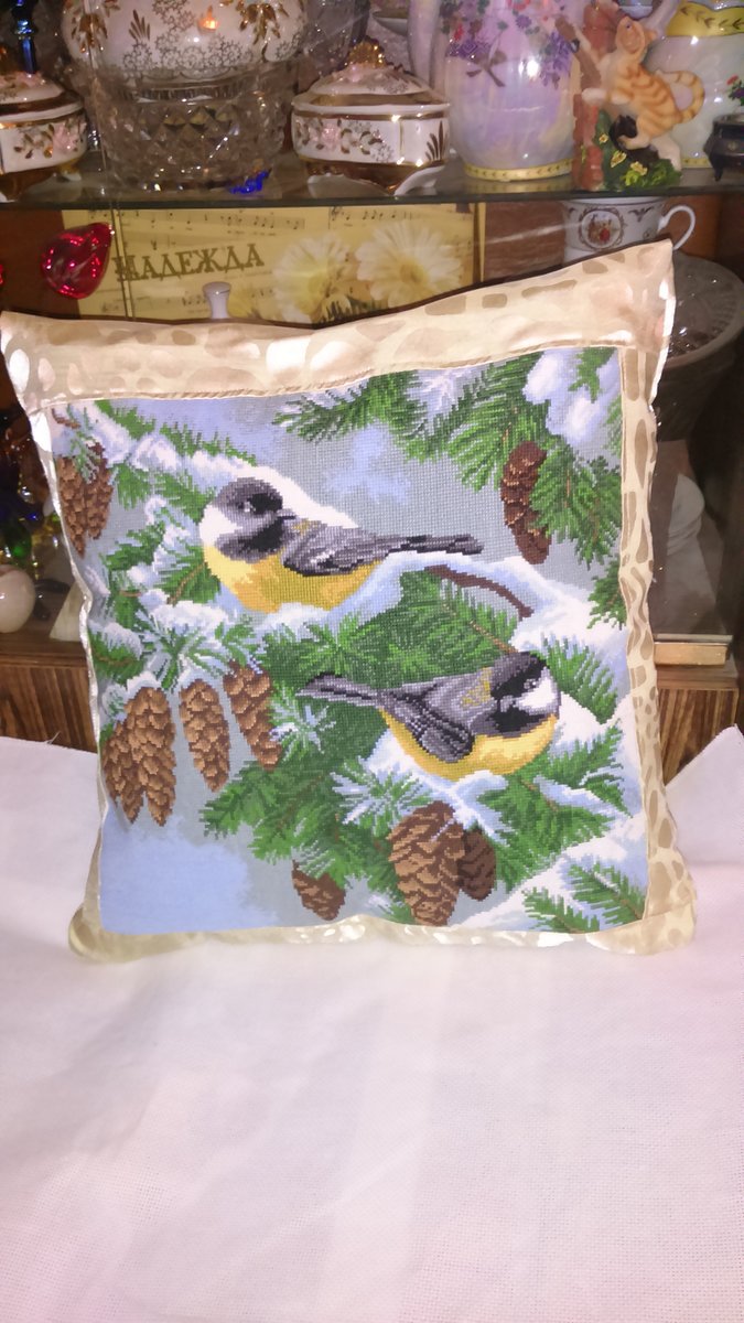 Вышивка «Подушка "Синички"»