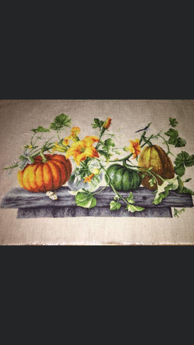Благодарю! Гарбузы на льне вышиты, забрал себе свекр на кухню.