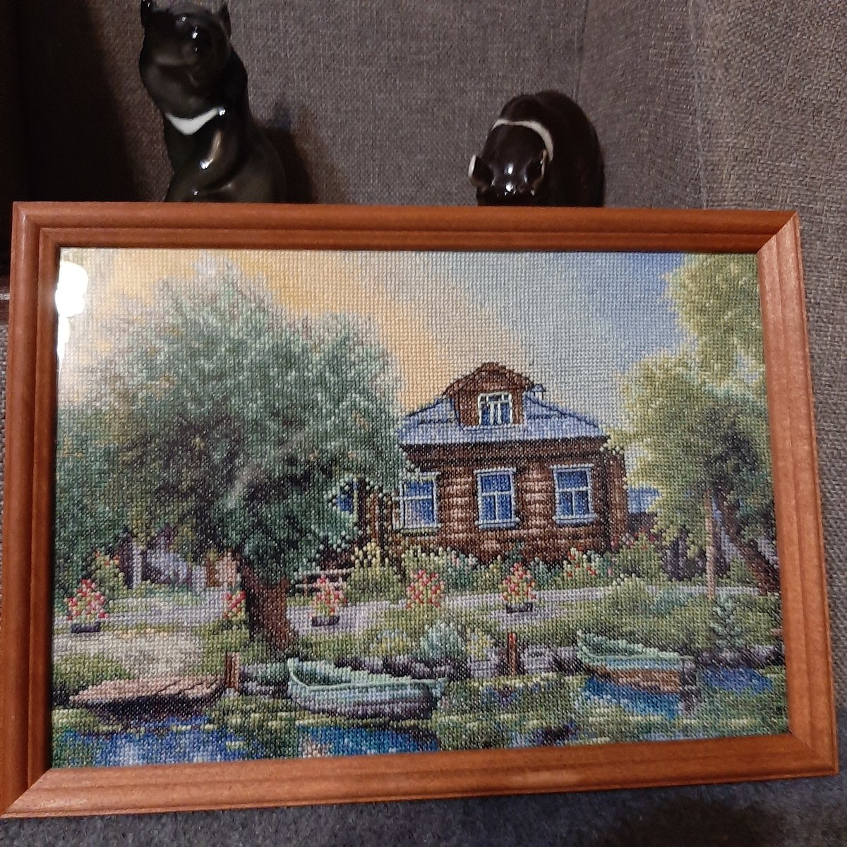 мне понравилась работа, оформлена тоже хорошо, кроме того считаю что каждой работе автор готовит место до оформления, а соответственно и само оформление выполняется "под интерьер". пусть работа приносит радость Вам и Вашим гостям и не важно где дома или на даче.