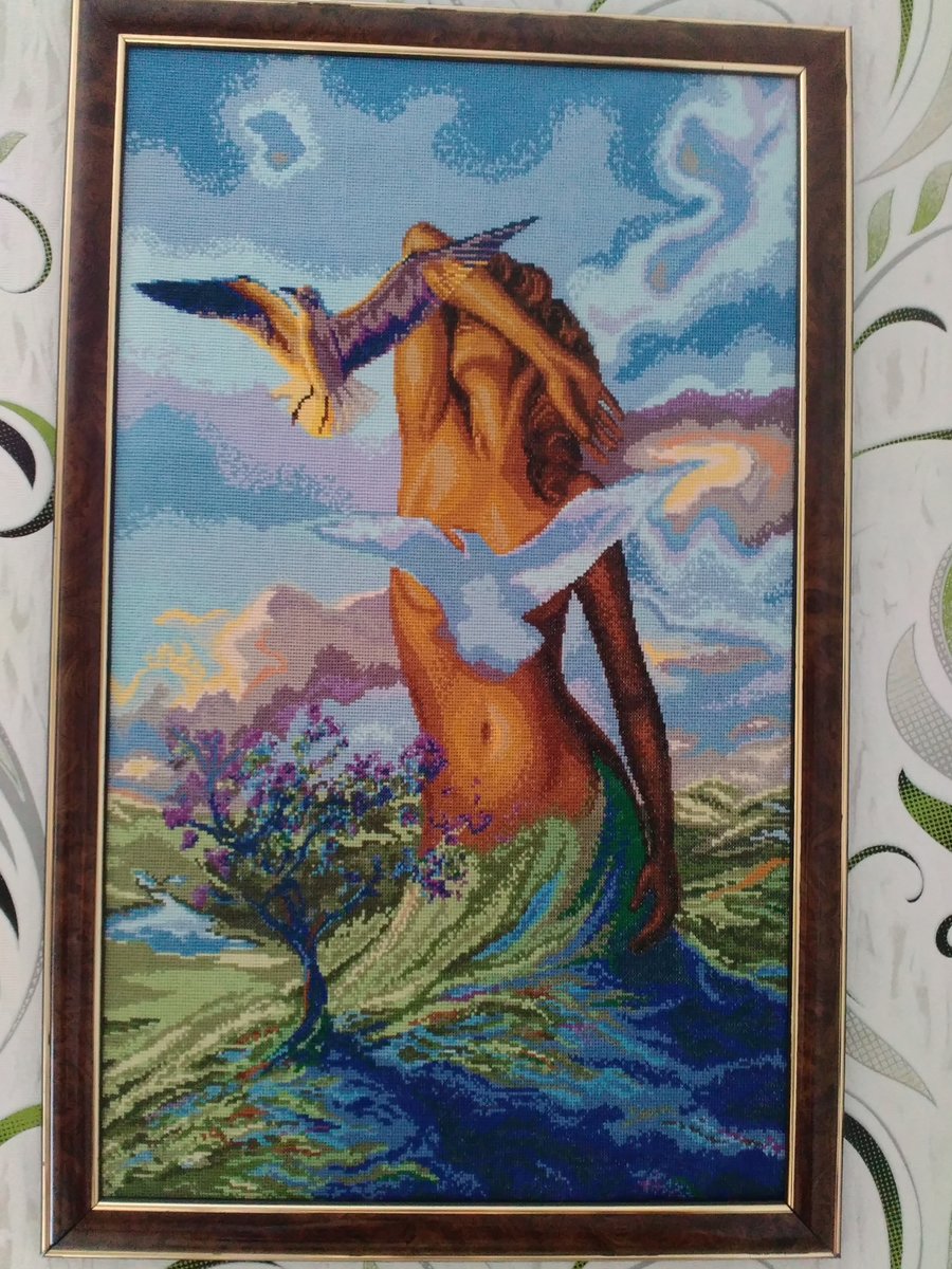 Моя первая работа.Почти 85000 крестиков, Аида 18;36 на 53 см. ДМС и польские мулине.