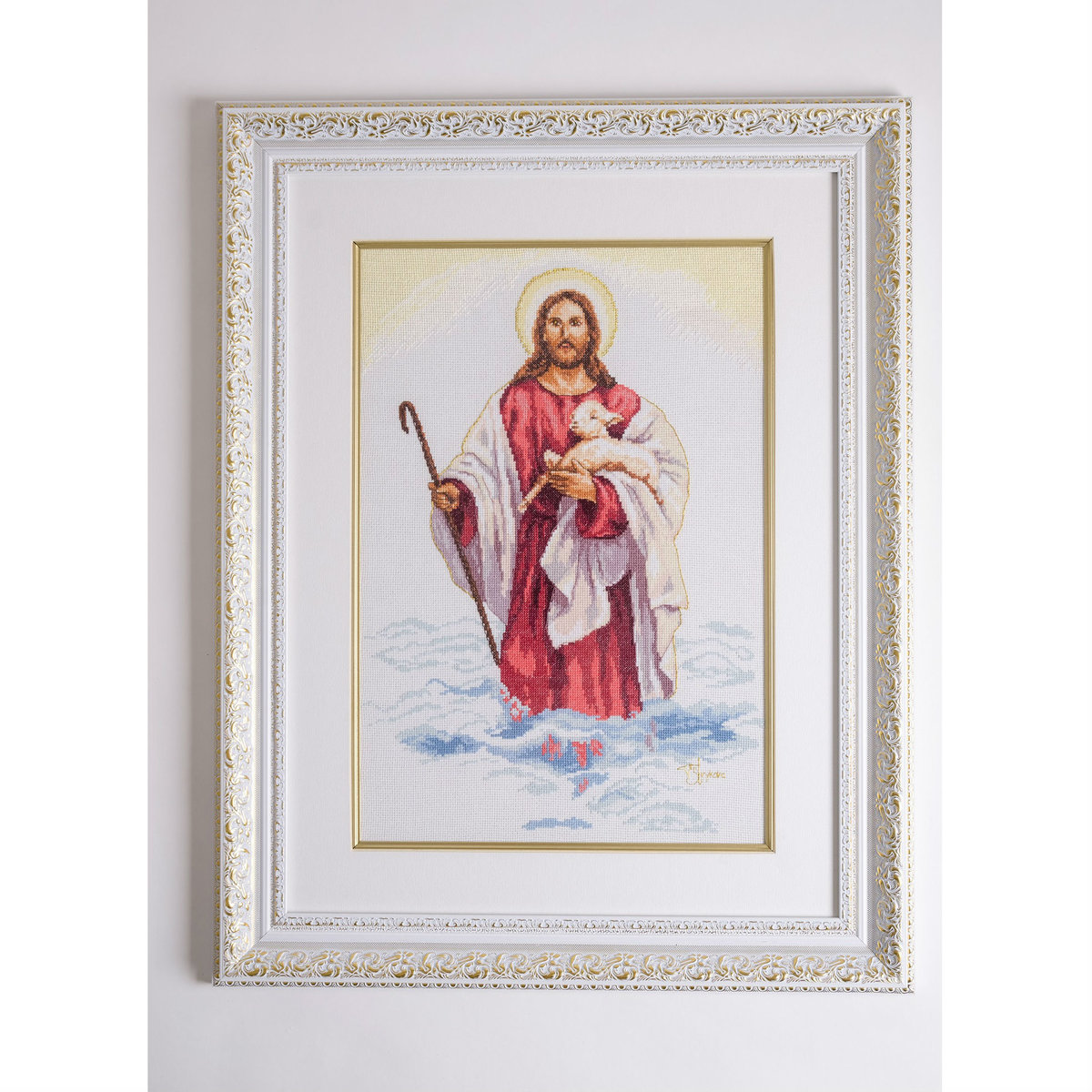 Фрагмент картины «Пастырь и овцы». Размер 44х30.Мулине: «Gamma» (23 оттенка). Набор фирмы "Алиса". Крест, полукрест, бэкстич, золотая нить.