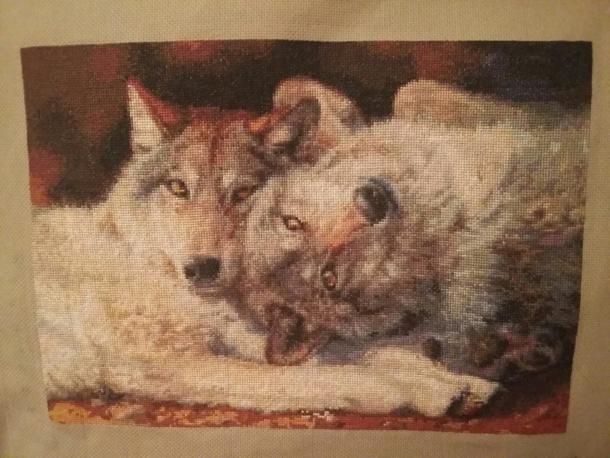 «Счастливая пара» по мотивам произведений Бонни Маррис (Bonnie Marris) - современной американской художницы-анималиста. Отшивала по оригинальному набору от Kustom Krafts, 40,6*28,5, 39 цветов, счетный крест.