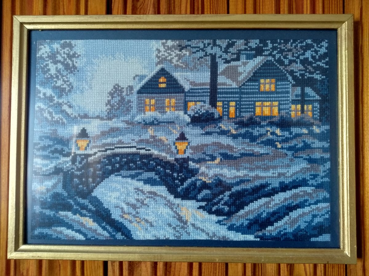 Вышивка «зима в деревне»