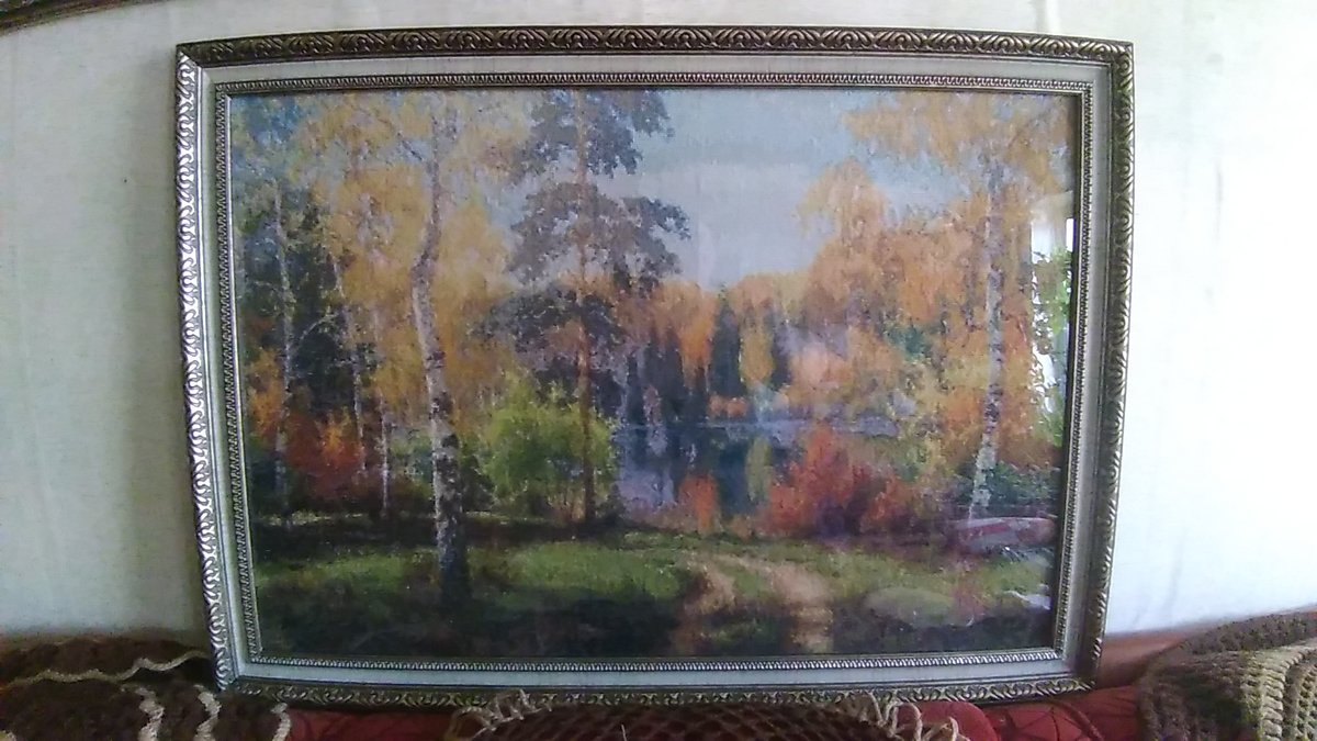 Видимо, мелкая очень вышивка, как будто акварелью написано. Красивый пейзаж!