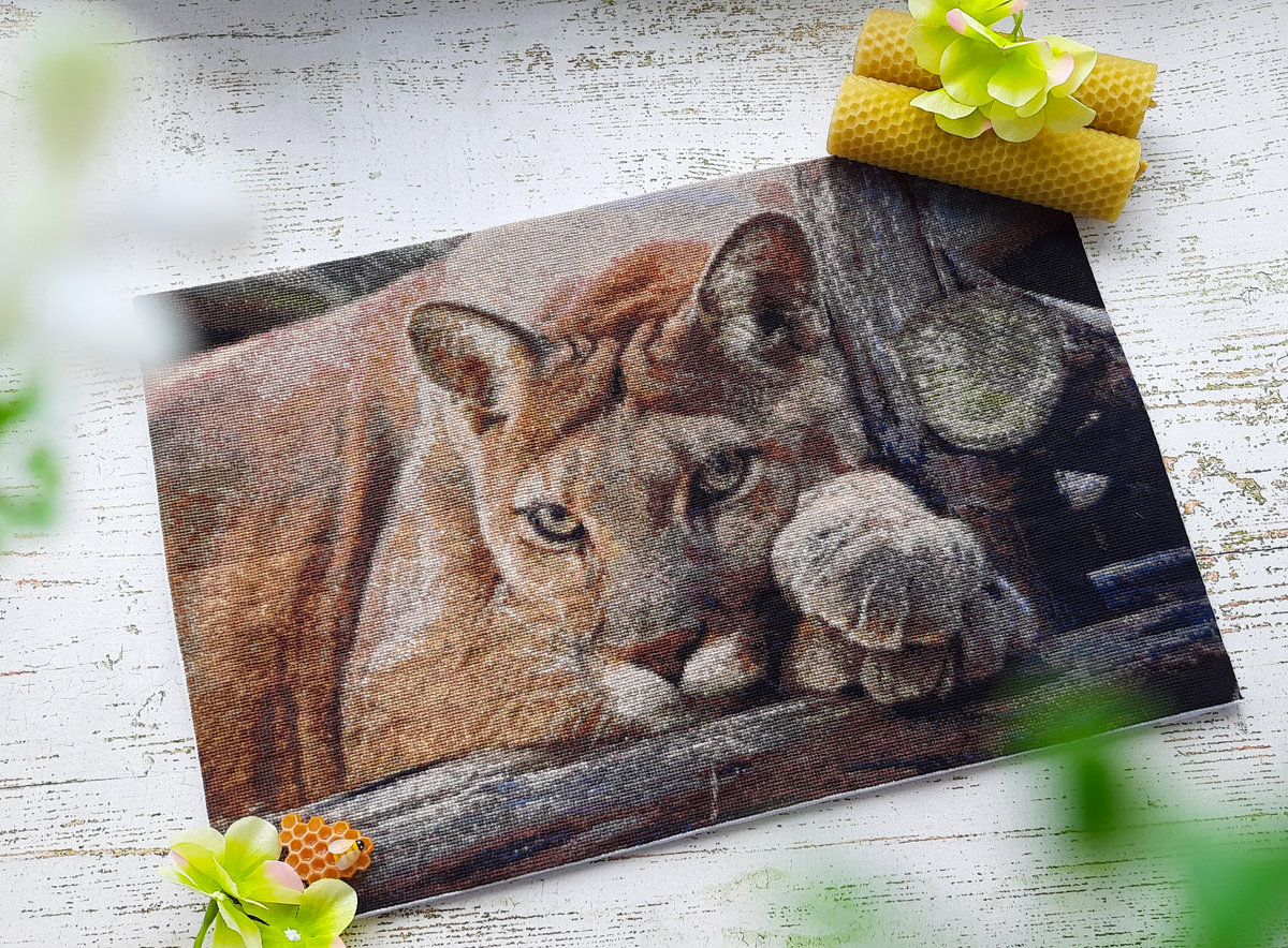 Работа вышита по схеме «Рыжая пума» (№802657).