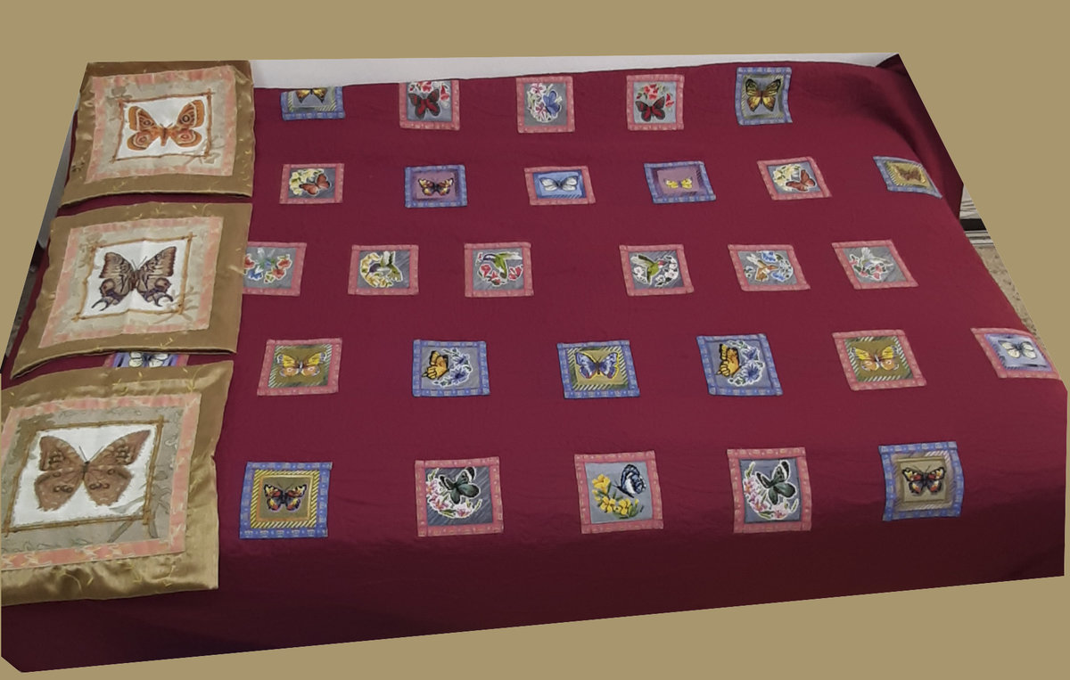 Вышивка «бабочки на покрывало и наволочки»