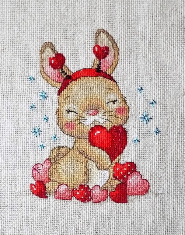 Вышивка «ЗАЙКА С СЕРДЕЧКАМИ»