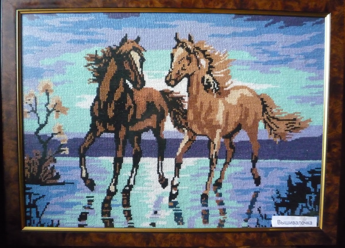 Это первая моя работа. вышитая в 1998 году. Она выполнена на канве с нанесенным ресунком. Вышивалась ленинградским мулине. Размер работы 43 на 35