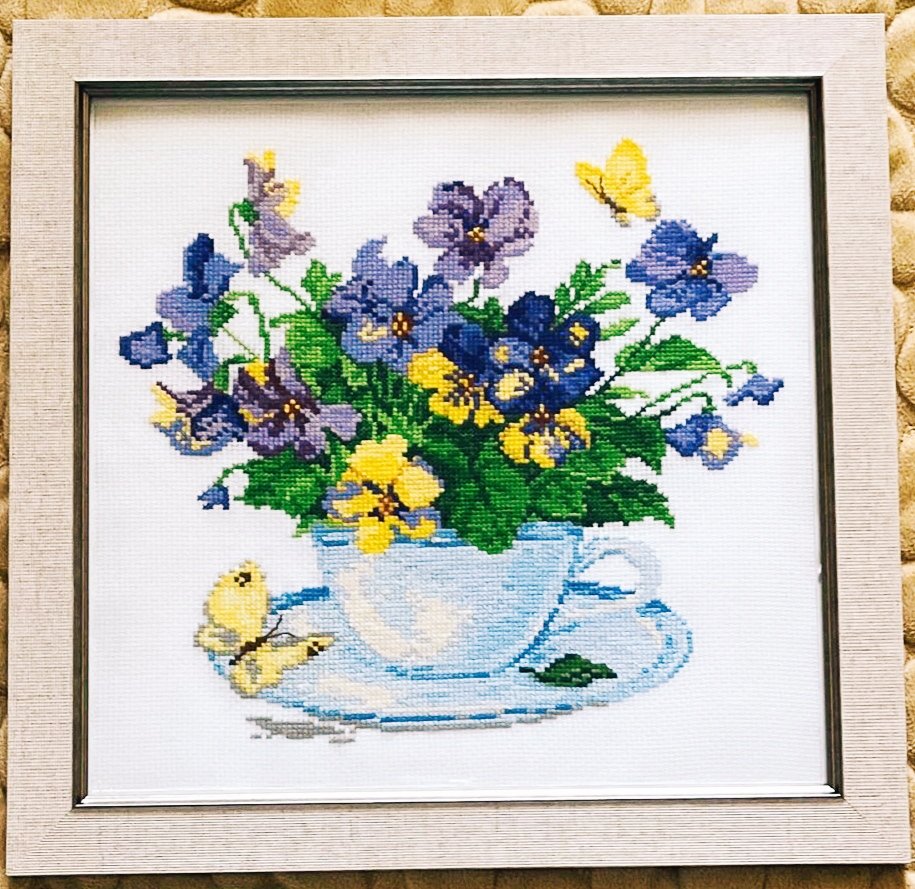 Схема от "Алиса". Оригинальный набор уехал на подарок, а в этом я цветочки вышила на свой вкус.