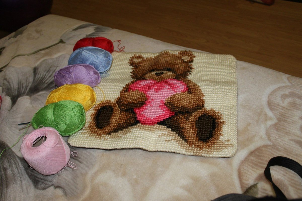 Вышивка «мишка подушка»