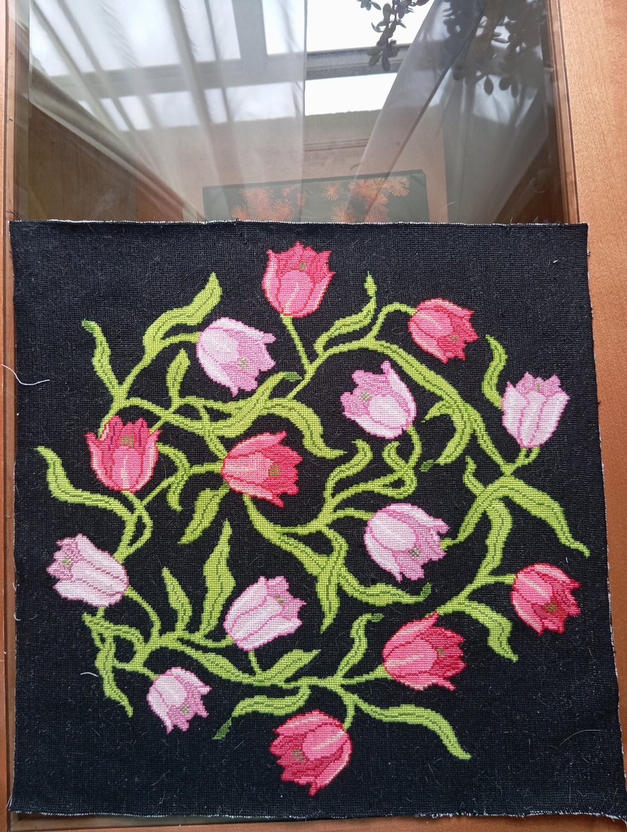 Гобеленная вышивка шерсть, размер 45 на 45 см, канва 6 стежков на 1 см. Рисунок из книги Бет Рассел"художественная вышивка"
