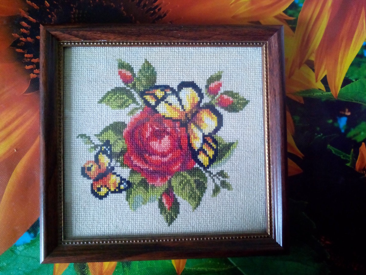 Вышивка «Бабочки на розе»
