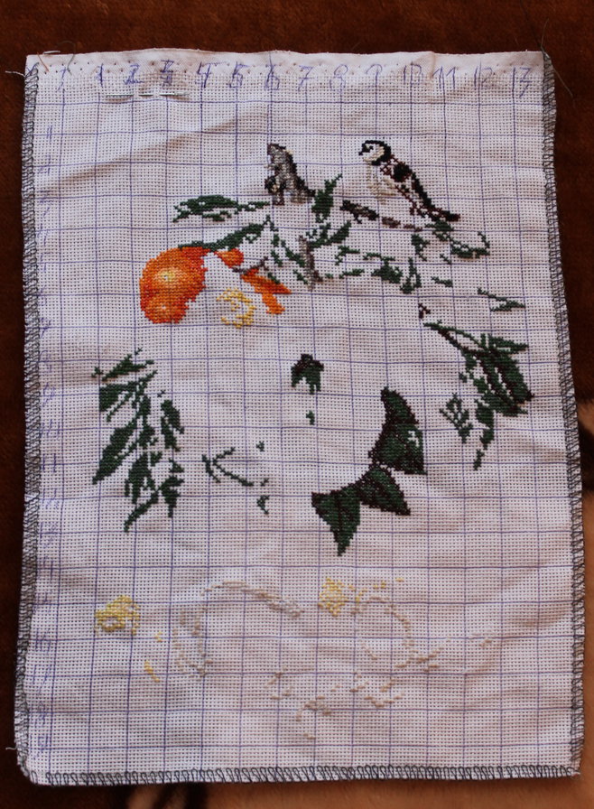 Небольшое продвижение вперед...Проявилась птичка и кусочек сочного апельсинчика.