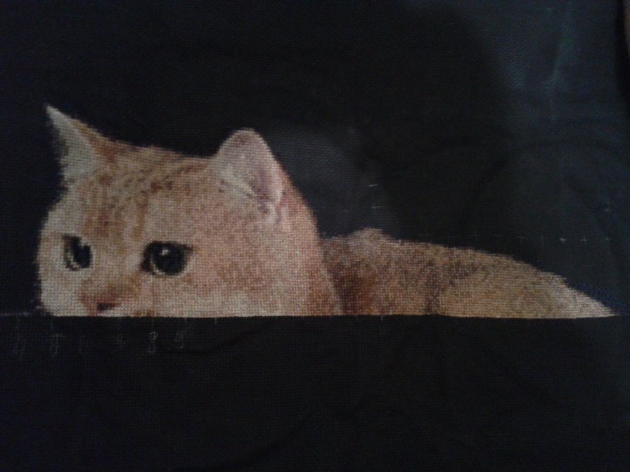 Позравляю с завершением щенка!А рыжий оригинал - это вообще чудо! Вышивка уже выглядит как живой кот, а когда доделаете - путаница начнется "а че это Рыжик залез на стену?")))))))))))))Легких крестиков!