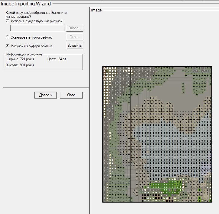 На стадии выбора источника указываю "Рисунок из буфера обмена", жму вставить. Выскочит окошко... Может и есть какая-то разница между опциями этого окна, я не заметил. Главное не выбирать метафайл. Жмем ОК и получаем...