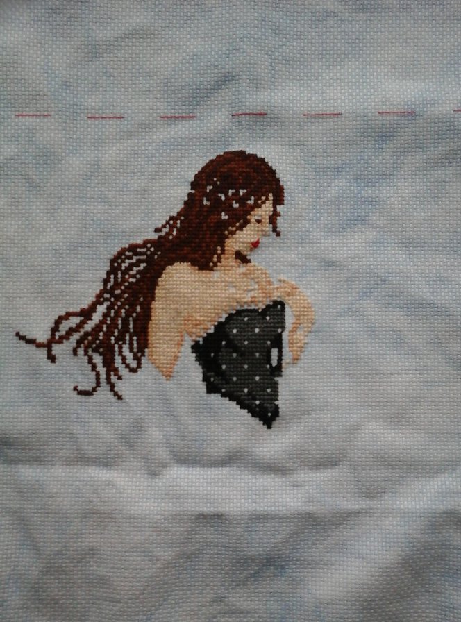 Первые крестики за выходные. Очень интересно вышивать, но эти половинки, четвертинки крестиков меня уже замучили. Начала вышивать сверху, чтобы видеть сразу результат, но с непривычки пришлось два раза распускать отшитые кусочки. Один крестик не туда и уже всё не сходится. Но эта картина так затягивает, что я за выходные практически не работала (работаю дома). Теперь надо заставить себя немного поработать и можно будет продолжать вышивать, вышивать, вышивать! :)