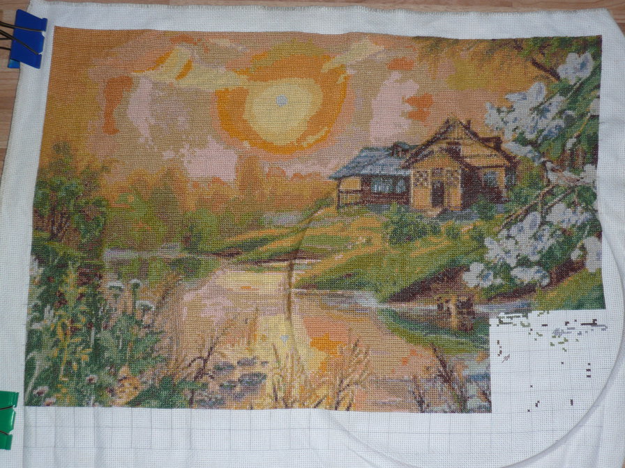 Девочки, наконец-то добралась до своей любимой картины и вышила очередной фрагмент :-) Состояние картины на сегодняшний день на фото :-) дошила лист №15 из 20