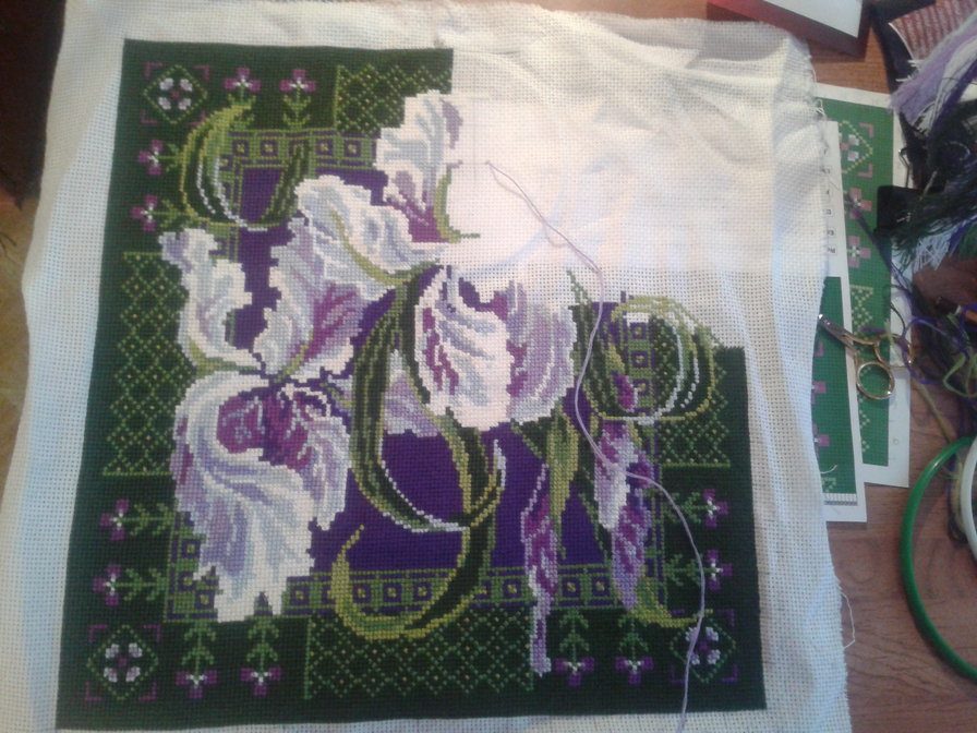 Чтобы держать легче было, с середины работы повернула канву на 180 градусов.