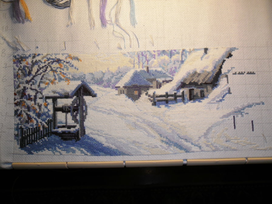 Так я продвинулась за сегодня.Хотелось бы успеть.Благо дома ничего не надо делать.Еду готовлю на несколько дней,муж не привередливый.Главное,чтоб было приготовлено.Да и пейзаж стал нравиться.