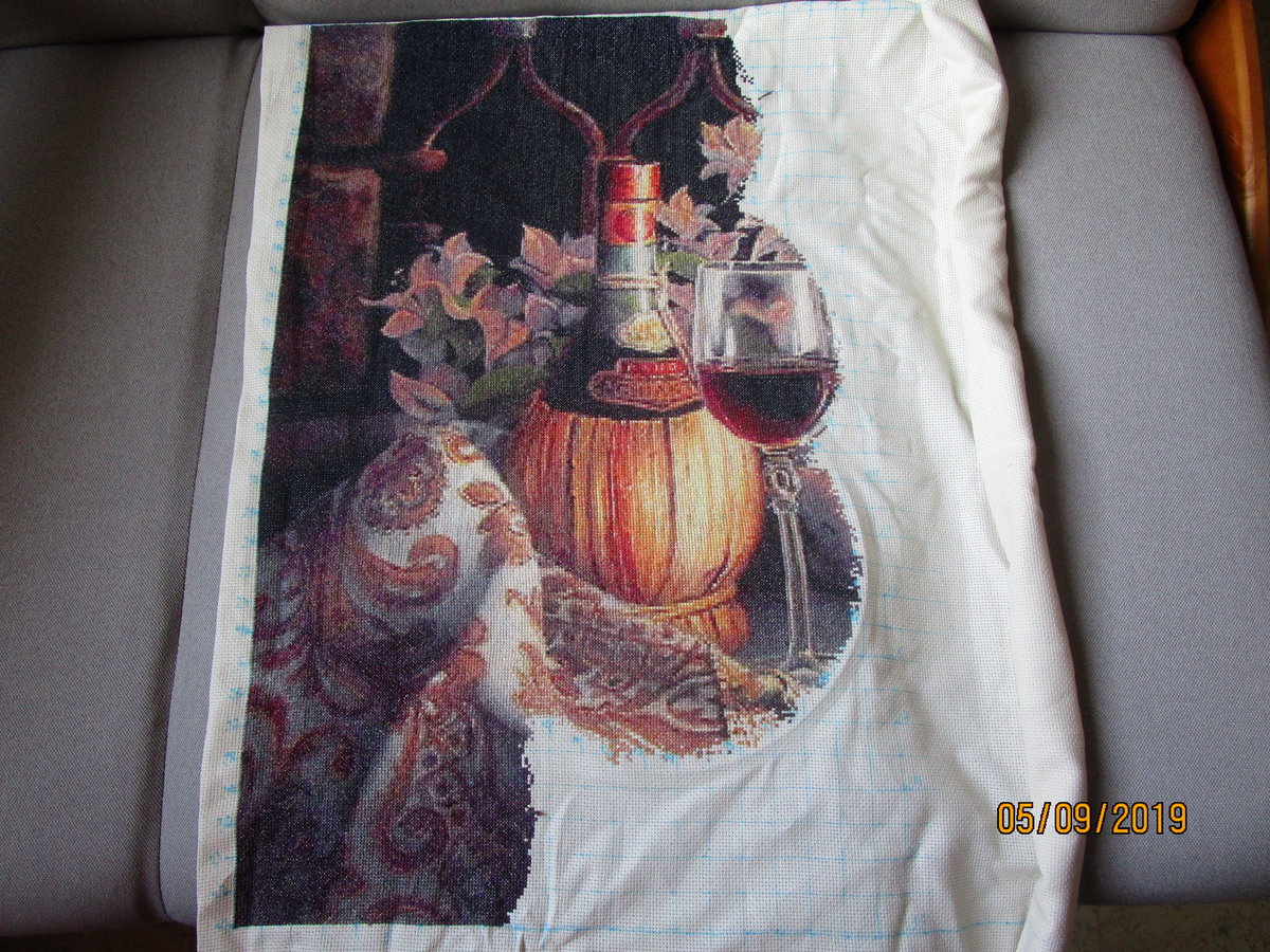 agmila, Ух, Эмилия, какая красота получается! Бутылочка и бокал с вином получились на столько реальными что так и хочется протянуть руку и взять бокальчик, да пригубить винца, почувствовать вкус легкой кислинки и свежести. Но героиня фрагмента для меня бесспорно-это скатерть (думаю что это она). Такая четкость рисунка, объемность цветка и завитков. Думаю что без одиночек не получилось бы такой потрясающей красоты. Так что, желаю Вам побольше терпения, и шустрой иголочки для преодоления таких участков!