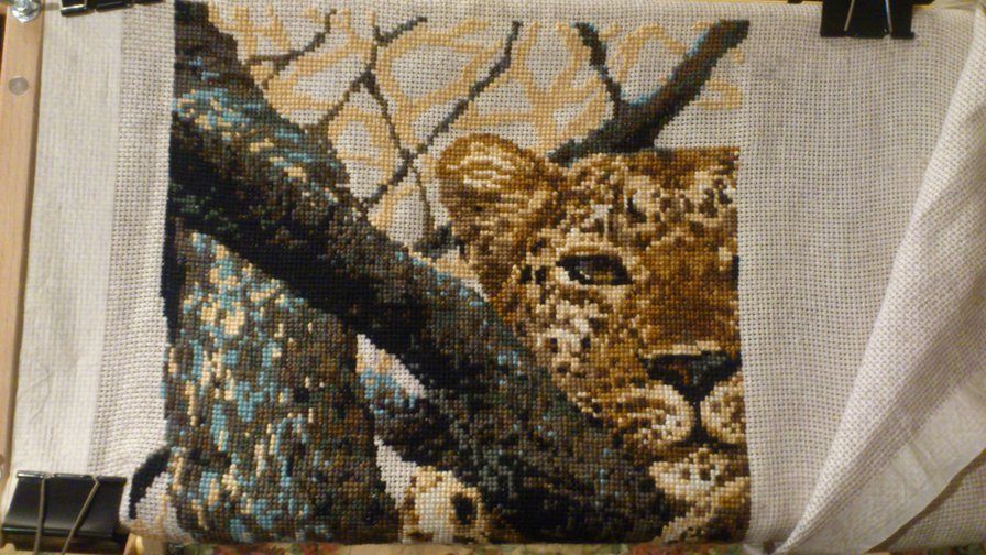 Хотела купить этот набор, но именно незашитые участки меня остановили, ведь канва очень крупная (страмин 11 каунта, кажется), а я люблю, чтобы работа была полностью зашита, это придает ей завершенность. Я думаю, чтобы был объем гепарда, и в то же время не была видна канва, надо зашить цветом канвы (светло–коричневый, бежевый), а так как основной рисунок выполняется шерстью, то фон зашить мулине