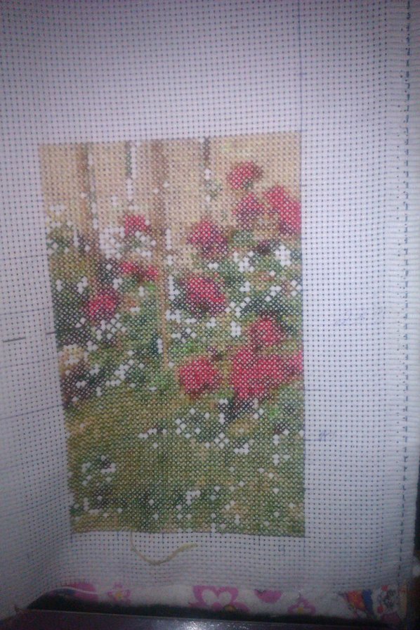 Я делаю разметку белыми нитками на белой канве. Потом их просто зашиваю в процессе работы, даже ничего выдергивать не приходится. С разметкой очень легко себя проконтролировать на наличие ошибок, т.к все схемы разделены 10 на 10 крестиков.