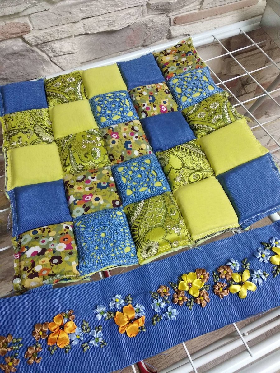 Пэчворк, крючок, вышивка лентами, чуток бисера, кружево.