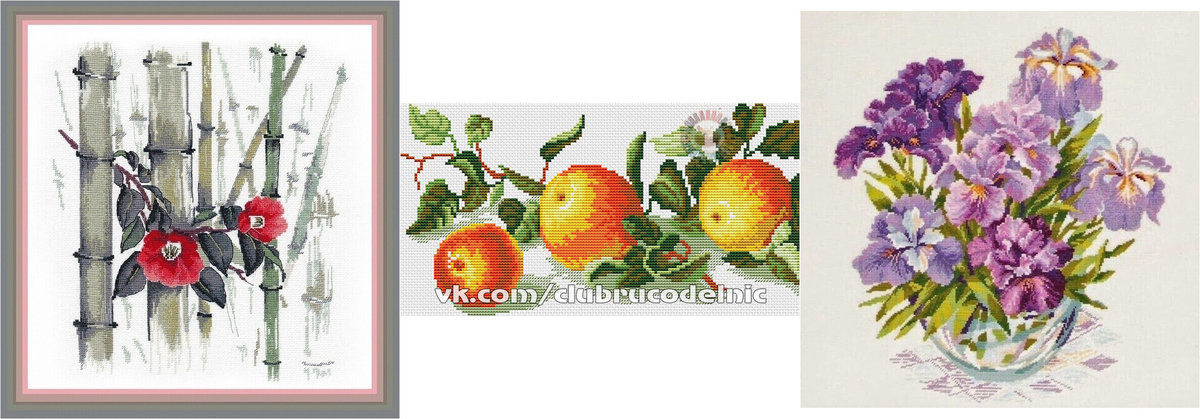 Оберег в вышивке по улучшению здоровья это ирисы, бамбук и персик.