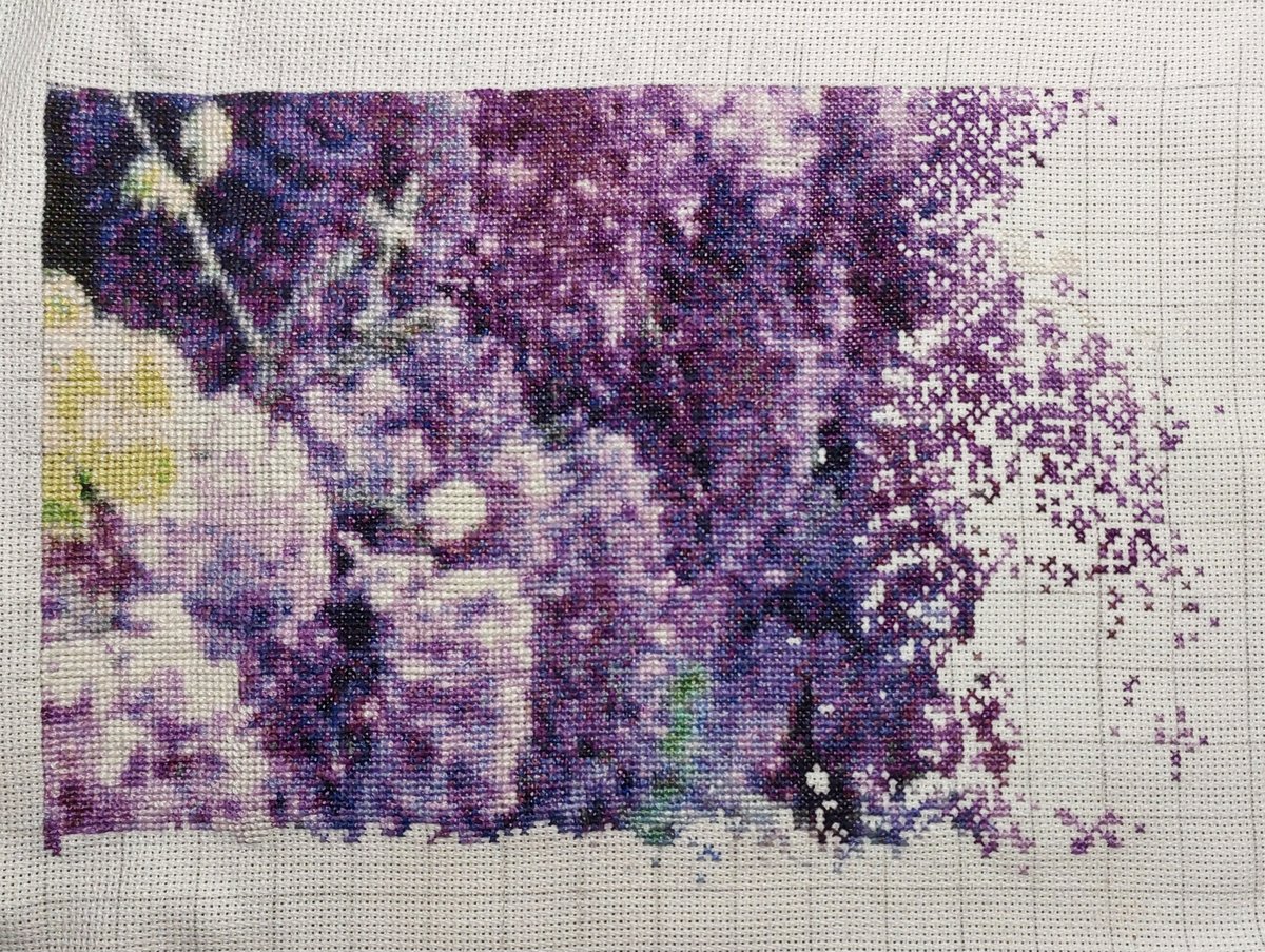 10% готово. Процесс идет очень медленно. Отвлекаюсь на вязание для внучки. Но и вышивку не забываю.