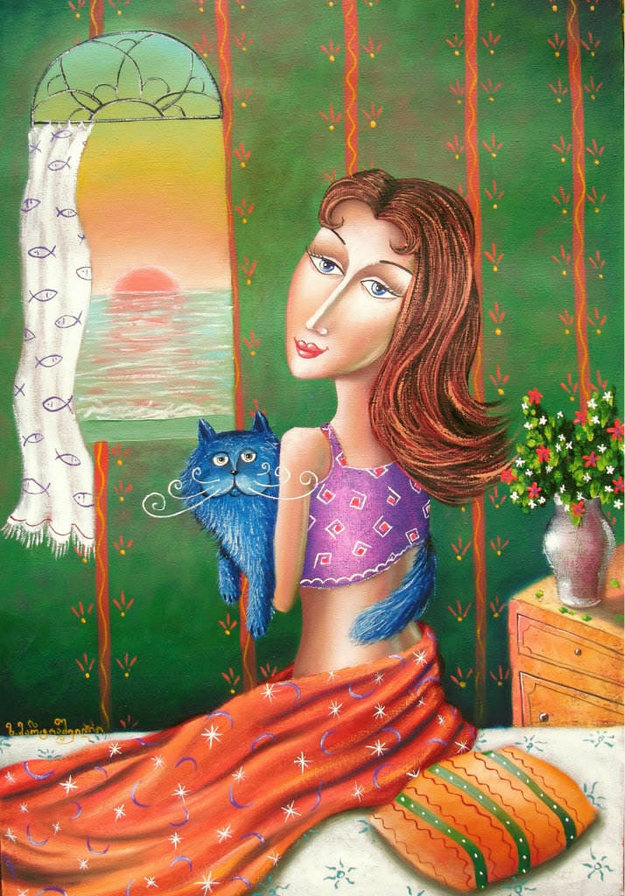 Схема вышивки «синий кот» (№1005435)