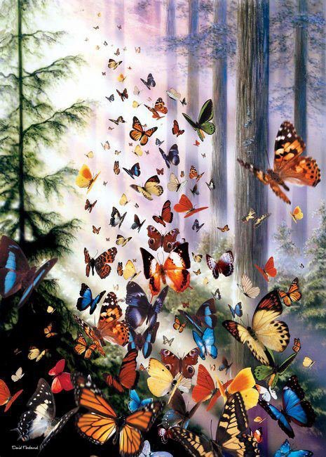 Схемы вышивки, похожие на «бабочки в лесу» (№1006632) по сюжету