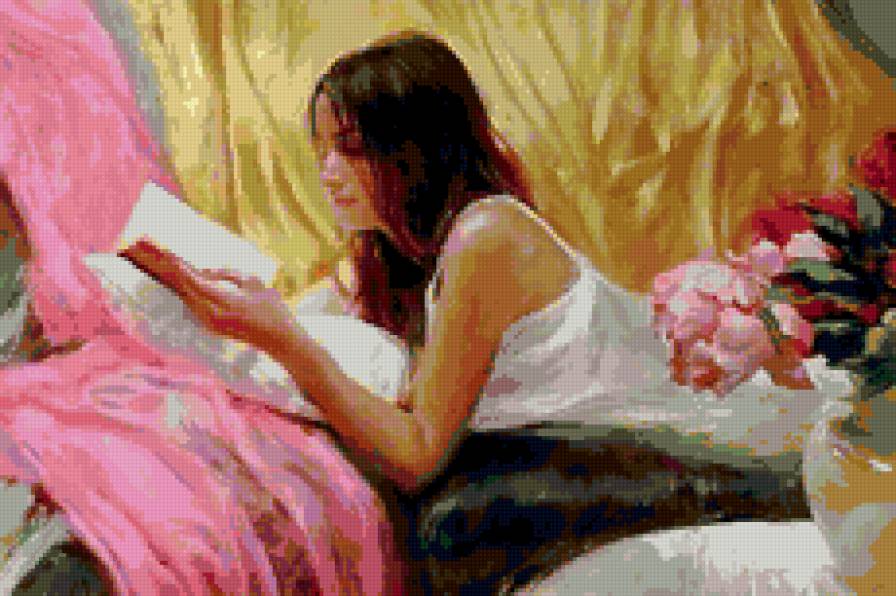 Теги: люди, девушка у окна, комната, девушка читает.