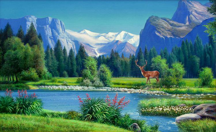 Схема вышивки «горный пейзаж и олень» (№1022916)