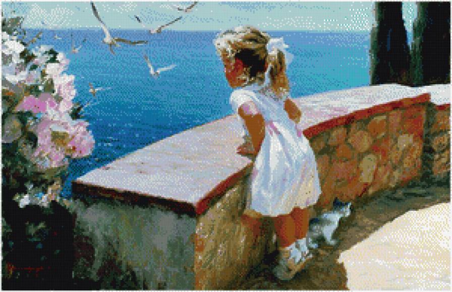 Схема вышивки «девочкаи чайки» (№1025835)