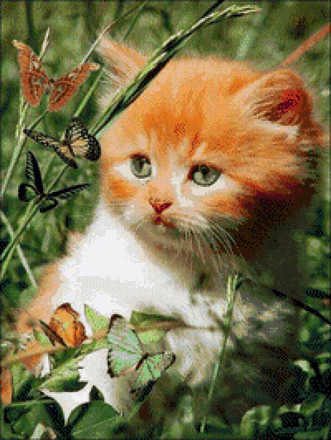 Схема вышивки «котенок и бабочки» (№1027519)