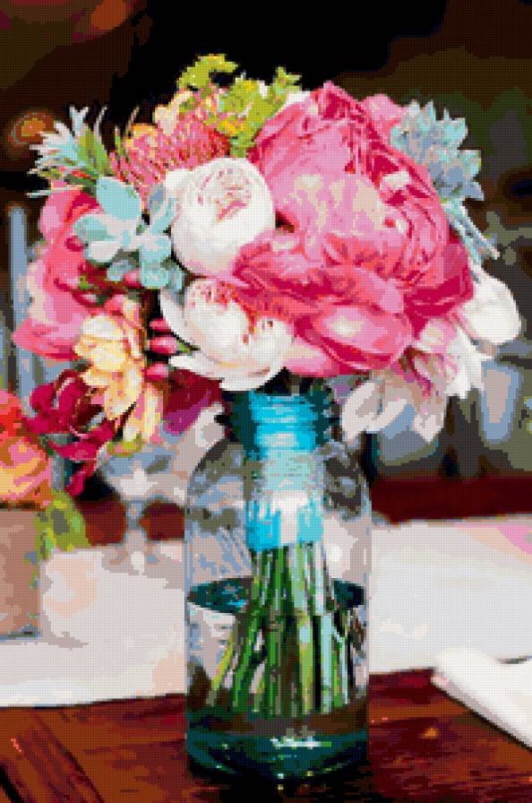 Теги: цветы букет картина ваза люпины гортензии натюрморт.