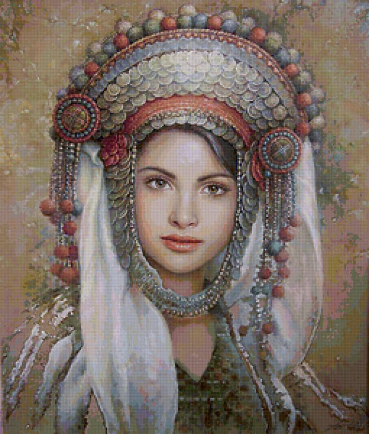 Схема вышивки «Девушка в национальом уборе» (№103314)