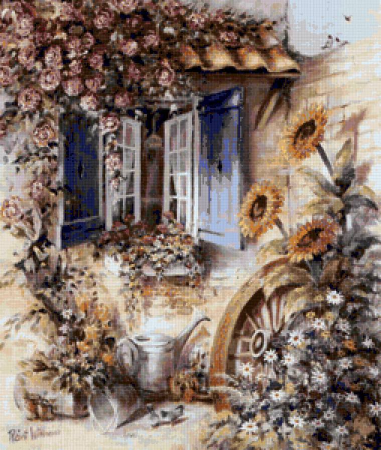 Схема вышивки «цветы.фасад дома» (№1042098)