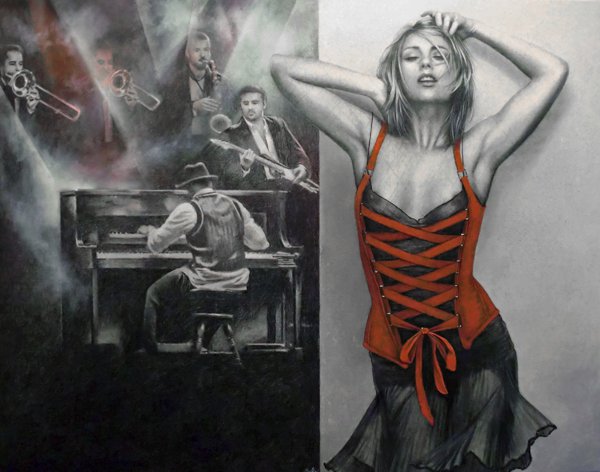 Схема вышивки «девушка в красном» (№1042205)