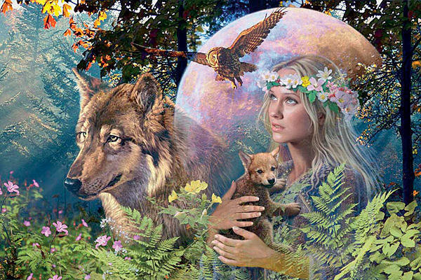 Схема вышивки «Девушка с волчонком» (№1043754)