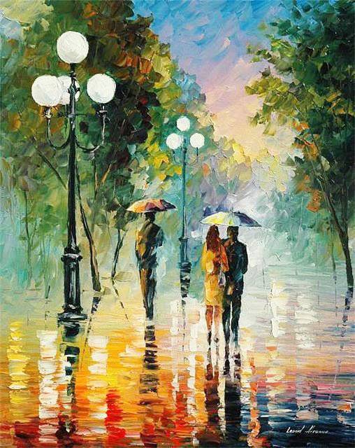 Теги: город, люди, зонт, дождь, поцелуй, живопись.