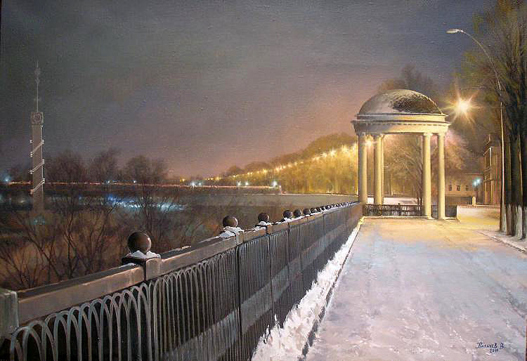 Теги: елочка, пейзаж, домик, луна, ночь, зима, снег.